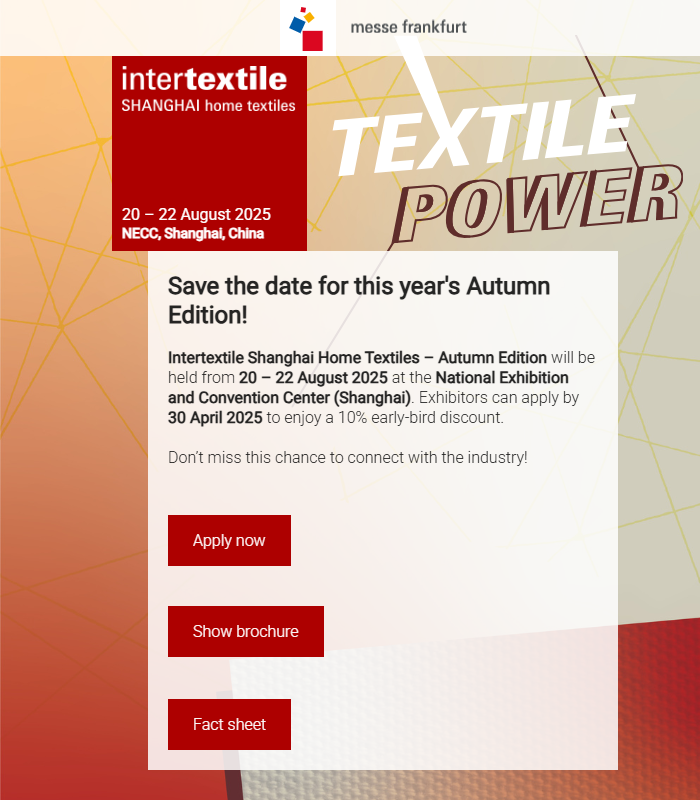 We would like to kindly remind all fairgoers that the most reliable way to advertise your company at Intertextile Shanghai Home Textiles is via our official communication channels. Other companies claiming to offer advertising services may be a scam, and it’s important to verify the legitimacy of any company before doing business with them. If you have any concerns regarding this matter, please don’t hesitate to contact us for assistance.